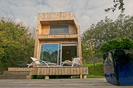 Wooden house of modern lines with about 38 m2 of surface with fully equipped kitchen, bathroom, large living room and mezanine.
