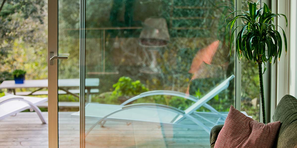 New house with a modern and functional decoration, living room with high and wide windows giving onto its own garden and mezanine also with a large window with view of countryside and sea.
